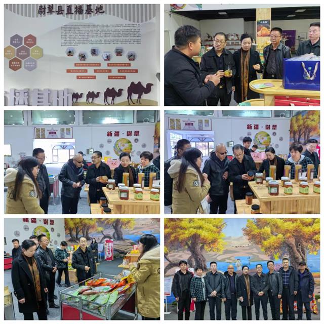 接受红色教育活动后,新疆泰鼎科技集团董事长贾四央一行考察了尉犁县电商直播基地。